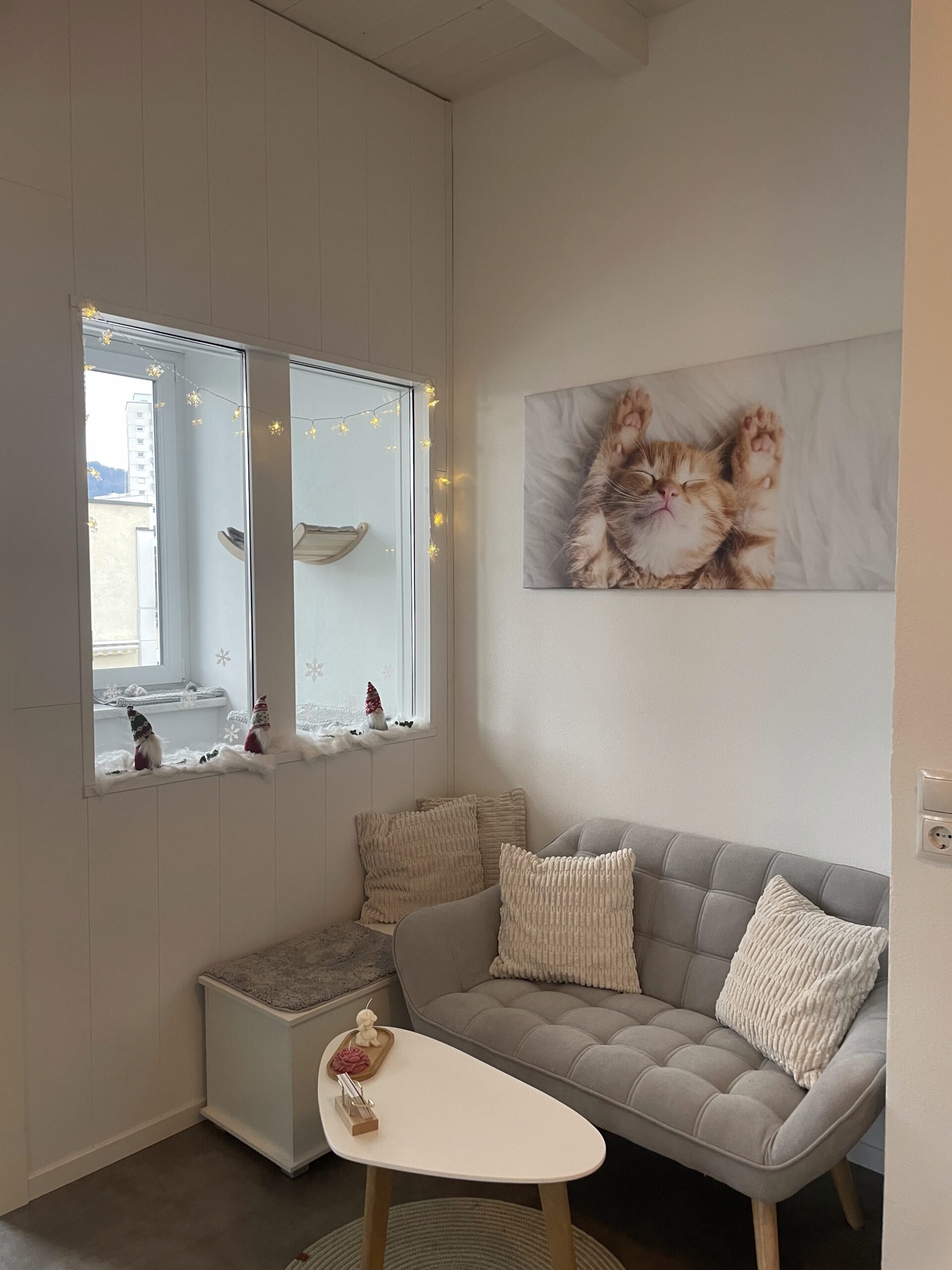 In unserer Katzenpension leben die Katzen grundsätzlich in liebevoller Gruppenhaltung. Sollte sich jedoch während des Aufenthalts herausstellen, dass sich eine Katze mit anderen nicht versteht oder aus gesundheitlichen Gründen besondere Ruhe benötigt, steht unser Einzelzimmer „Pfänderblick“ zur Verfügung. In dieser geschützten, lichtdurchfluteten Umgebung kann sich Ihre Katze entspannen und zur Ruhe kommen. Mit einem schönen Ausblick und gemütlichen Rückzugsorten bietet der Raum eine ruhige Alternative mit viel Komfort und Privatsphäre.